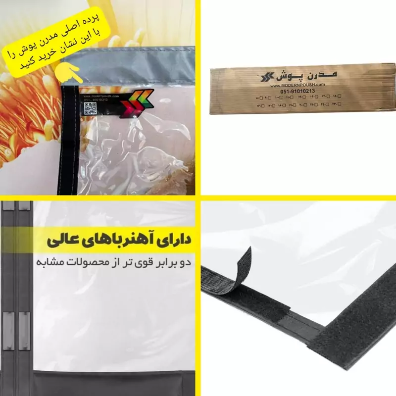 استفاده از درب های پلاستیکی /طلقی (مدرن پوش) برای جلوگیری از ورود سرما و حتی گرما به داخل ساختمان میباشد و یکی دیگر از مزیت های این پرده مانع شدن از ورود حشرات موذی به داخل ساختمان و اتاق و یکی از بهترین روش ها برای رهایی دائم از شر این موجودات موذی و حتی بیماری زا می باشد. مزیت درب پلاستیکی/طلقی (مدرن پوش) این است که علاوه بر دارا بودن مگنت های مغناطیسی(آهن ربا) قوی به راحتی نصب شده و حتی در صورت عدم نیاز میتوانید این درب را از روی چارچوب نصب شده جدا کنید و هر زمان که نیاز شد مجددا به سادگی آن را نصب کنید.این محصول از جنس طلق شفاف بوده و نوار حاشیه آن به رنگ طوسی میباشد که به جذابیت پرده اضافه کرده است.دقت کنید که روی پکیج های جدید این محصول جعبه وجود دارد و روی جعبه ادرس سایت و نام مدرن پوش مطابق تصاویر سایت درج شده است