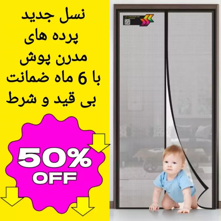 پرده توری مگنتیک عرض180 ارتفاع 210 مگنتی آهنربایی مدرن پوش کد 2258