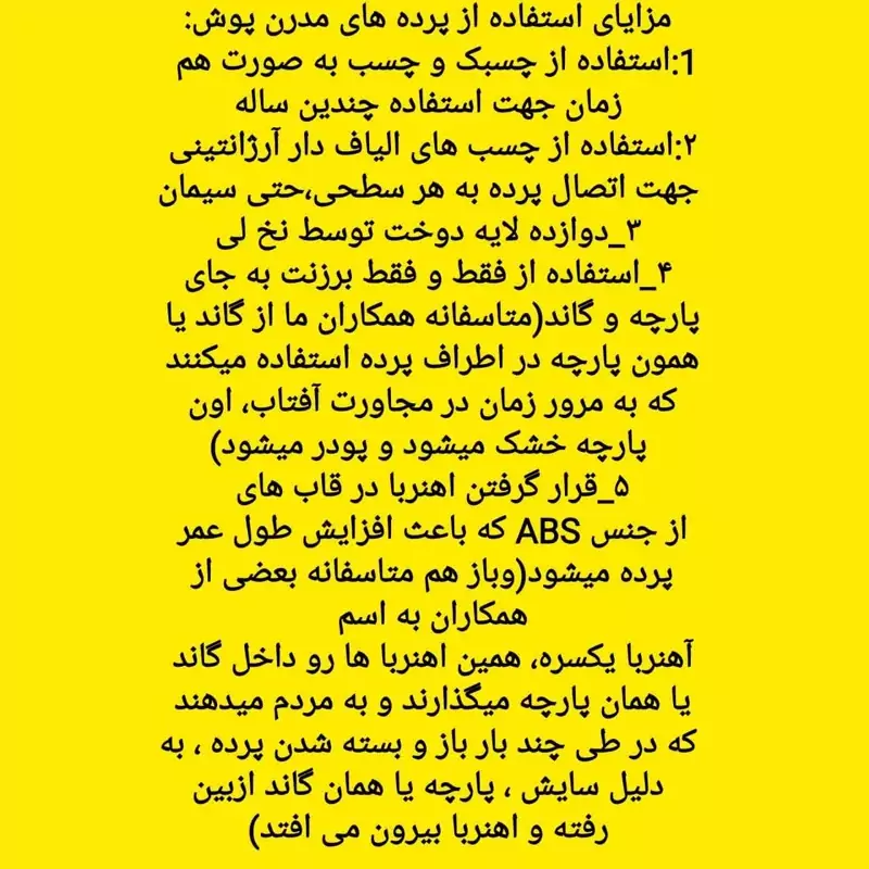 روش نصب: با کمک چسب های بسیار قوی (نخ دار آرژانتینی)موجود بر روی پرده