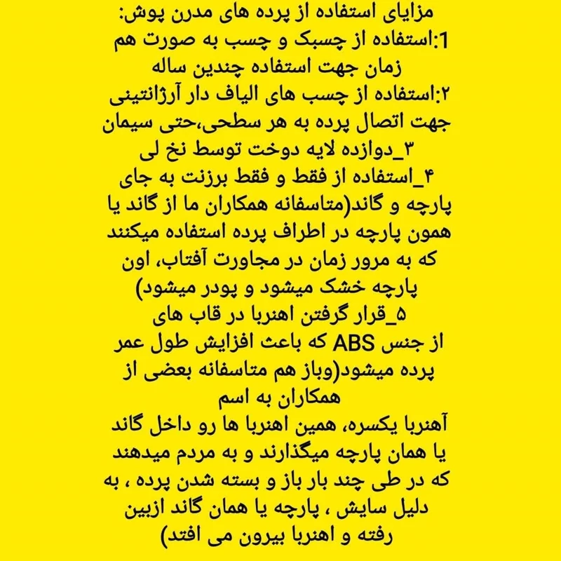 روش نصب: با کمک چسب های بسیار قوی (نخ دار آرژانتینی)موجود بر روی پرده