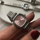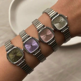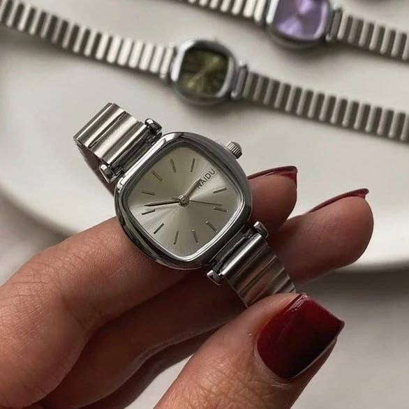 ساعت مچی زنانه نایدو naidu منیمال بند استیل کرکره ایی مربعی سفید+باطری اضافی کد 9218
