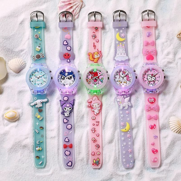 ساعت مچی بچگانه (دخترانه) چراغ دار و شب نما برند lidon عروسکی و فانتزی-تک شاخ +باطری اضافی کد 9906