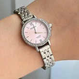 ساعت مچی زنانه کوشی Koushi بند استیل نقره ایی قاب دور نگین سبز کیفیت درجه یک+باطری اضافی کد 9945