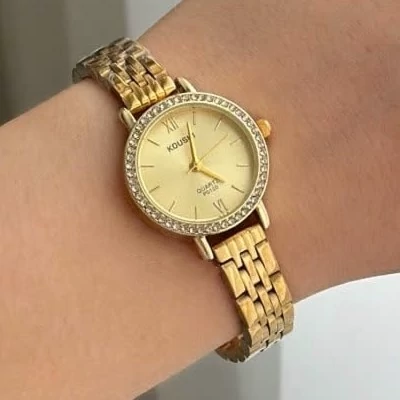 ساعت مچی زنانه کوشی Koushi بند استیل نقره ایی قاب دور نگین سبز کیفیت درجه یک+باطری اضافی کد 9945