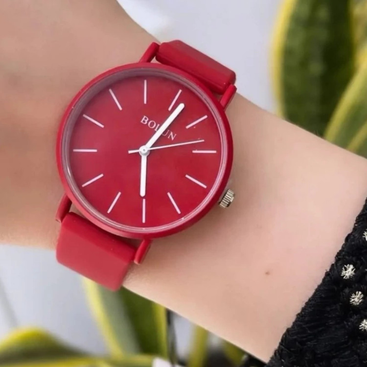 ساعت مچی زنانه و دخترانه بلون BOLUN گرد بند سیلیکونی پاستیلی آبی +باطری اضافی کد 2598