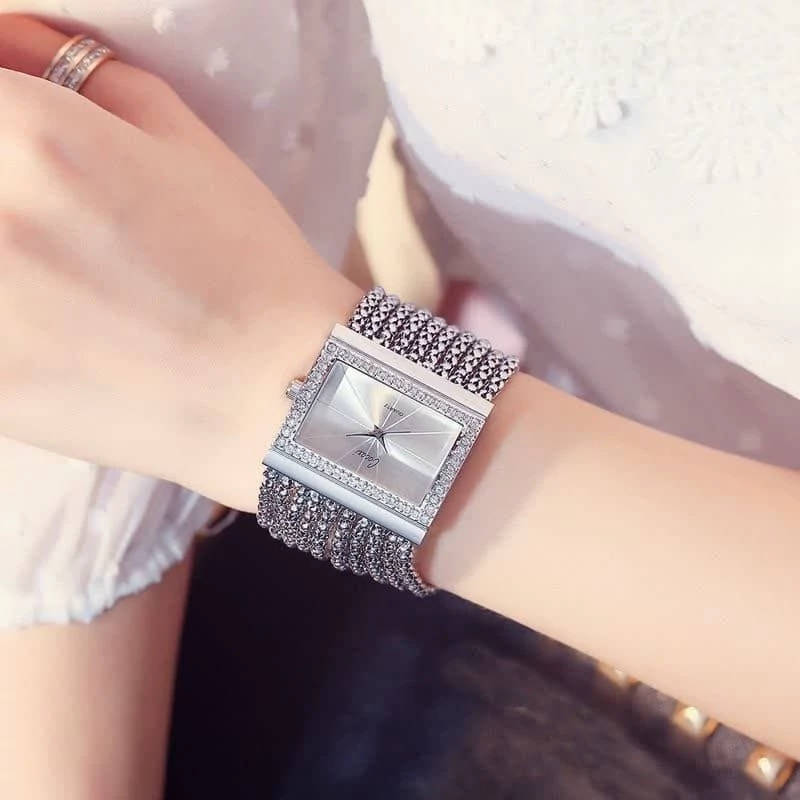 ساعت مچی زنانه دستبندی مجلسی نقره ایی کاکاچی +باطری اضافی کد 3056