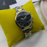 ساعت زنانه رومانسون بند طلایی نقره ای صفحه مشکی+باطری اضافی کد 1770