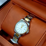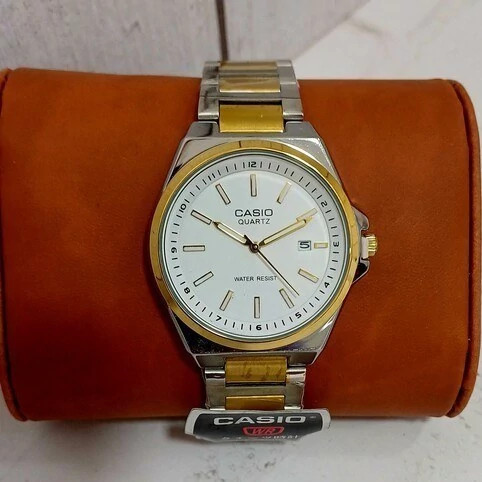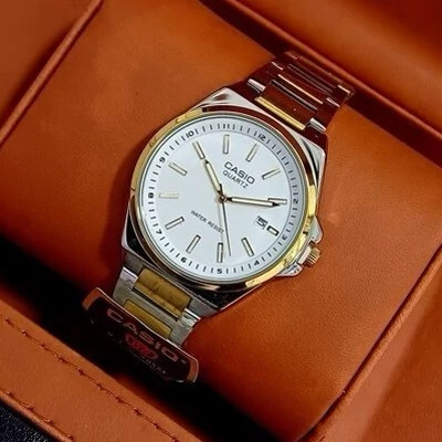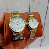 ست ساعت مچی زنانه و مردانه کاسیو Casio بند استیل نقره ایی و طلایی صفحه نمایش سفید+باطری اضافی کد9542