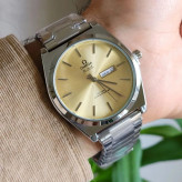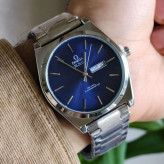 ساعت مچی مردانه امگا OMEGA طرح کلاسیک دو تقویم بند استیل نقره ایی صفحه نمایش مشکی+باطری اضافی کد 9531