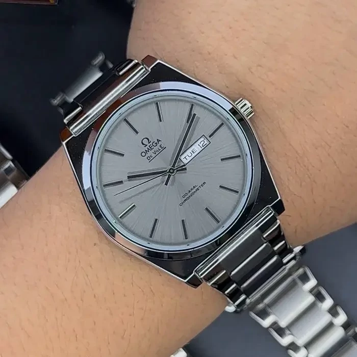 ساعت مچی مردانه امگا OMEGA طرح کلاسیک دو تقویم بند استیل نقره ایی صفحه نمایش مشکی+باطری اضافی کد 9531