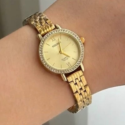 ساعت مچی زنانه کوشی Koushi بند استیل نقره ایی قاب دور نگین سفید کیفیت درجه یک+باطری اضافی کد 9943