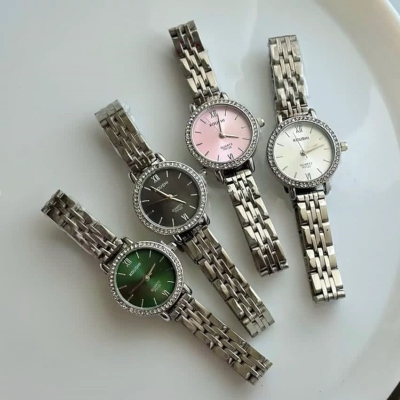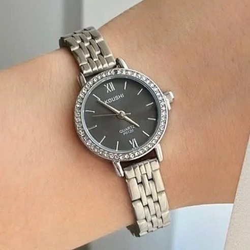 ساعت مچی زنانه کوشی Koushi بند استیل نقره ایی قاب دور نگین سفید کیفیت درجه یک+باطری اضافی کد 9943