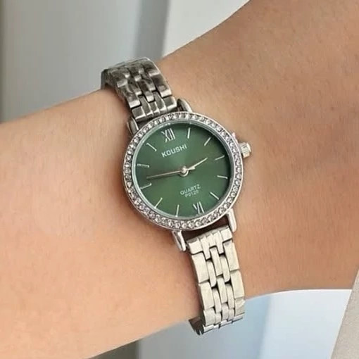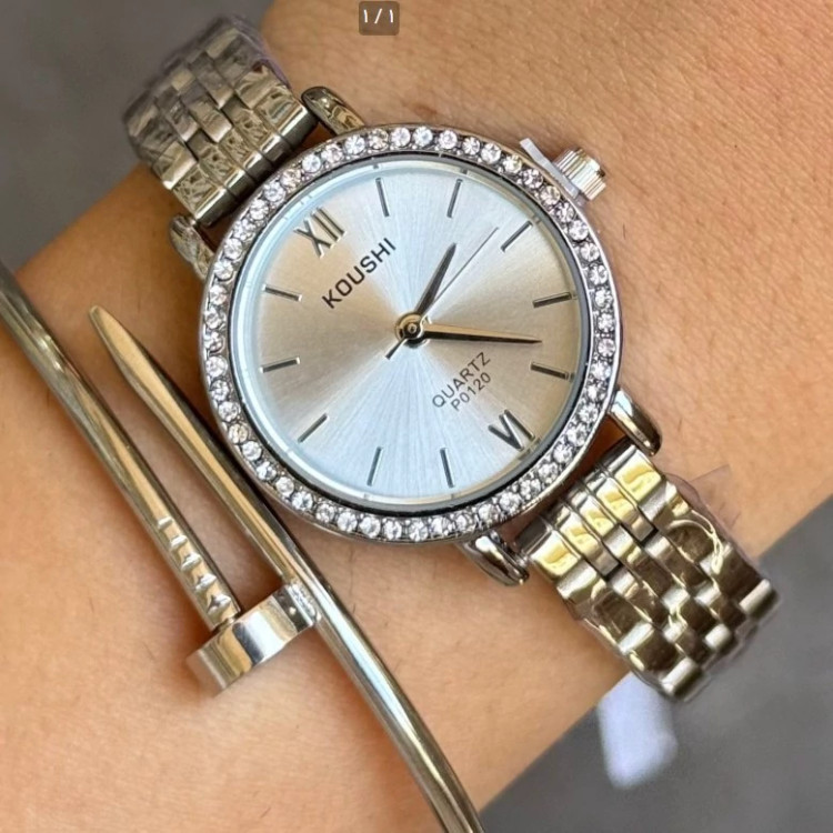 ساعت مچی زنانه کوشی Koushi بند استیل طلایی قاب دور نگین کیفیت درجه یک+باطری اضافی کد 9946