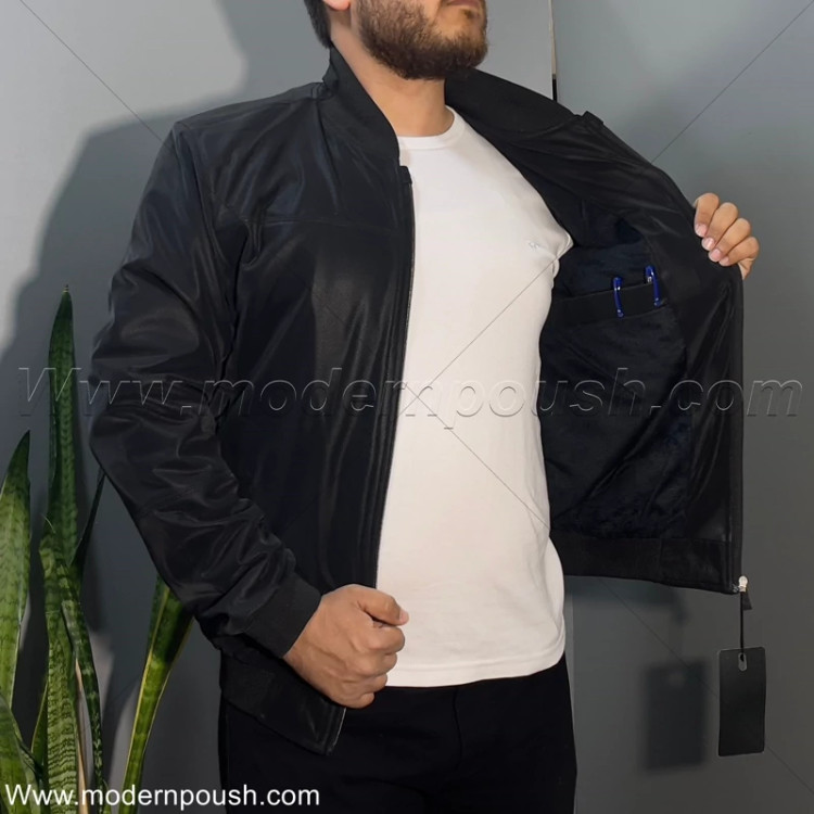 کاپشن یقه خلبانی مشکی زمستانه مردانه طرح جدید کد2770