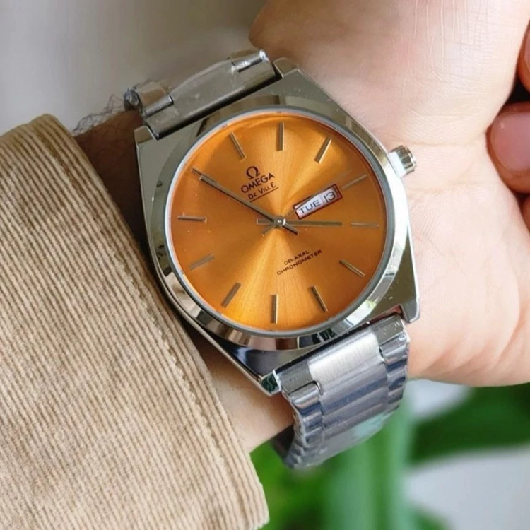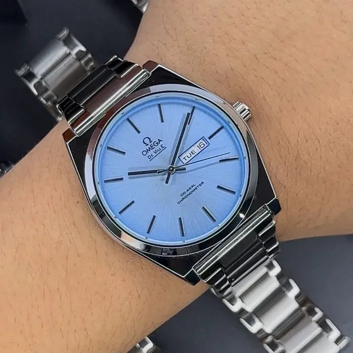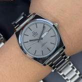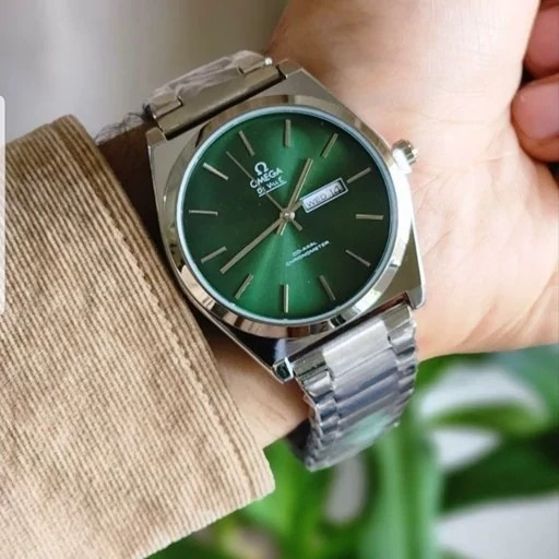 ساعت مچی مردانه امگا OMEGA طرح کلاسیک دو تقویم بند استیل نقره ایی صفحه نمایش سفید+باطری اضافی کد 9529