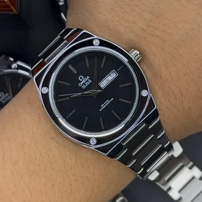 ساعت مچی مردانه امگا OMEGA طرح کلاسیک دو تقویم بند استیل نقره ایی صفحه نمایش سفید+باطری اضافی کد 9529