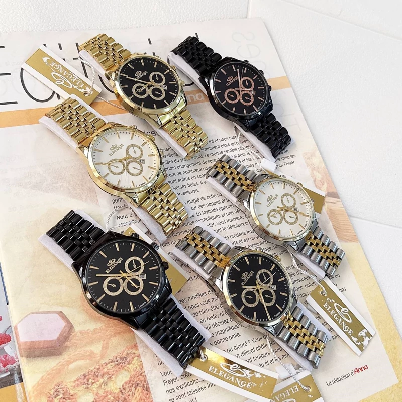 🔻ساعت تاریخدار مردانه و زنانه موتور ژاپن فول استیل و ضد آب مارک معروف ELEGANCE