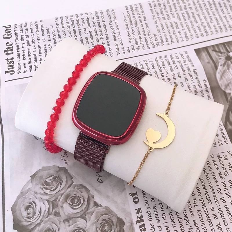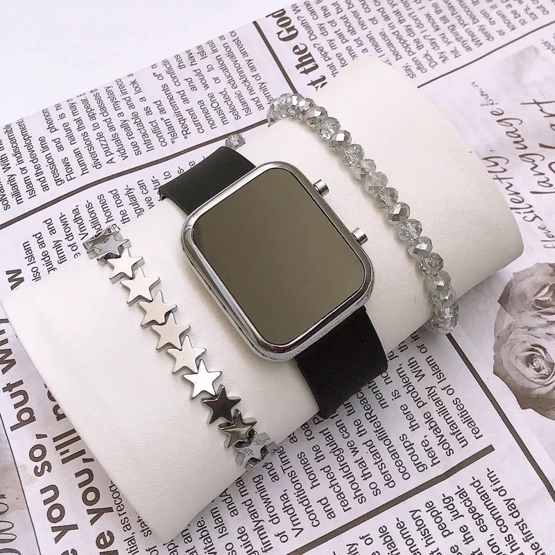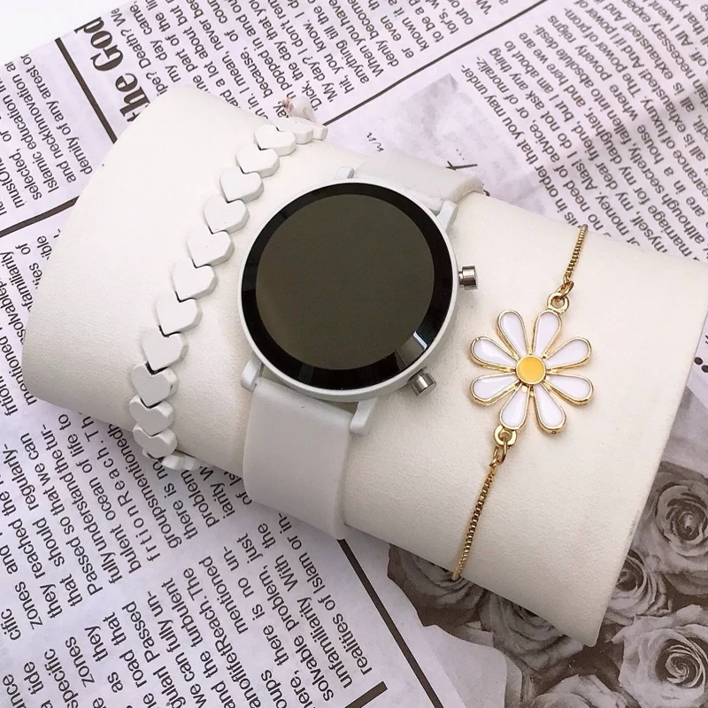 ست ساعت و دستبند دخترانه در 7 رنگ مختلف ساعت ال ای دی کد52201
