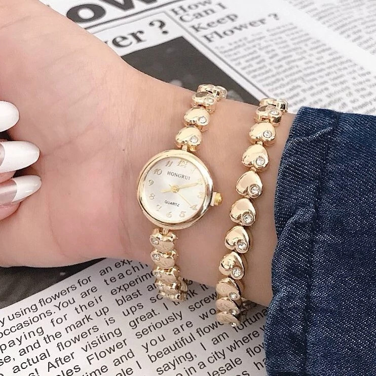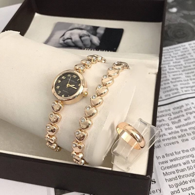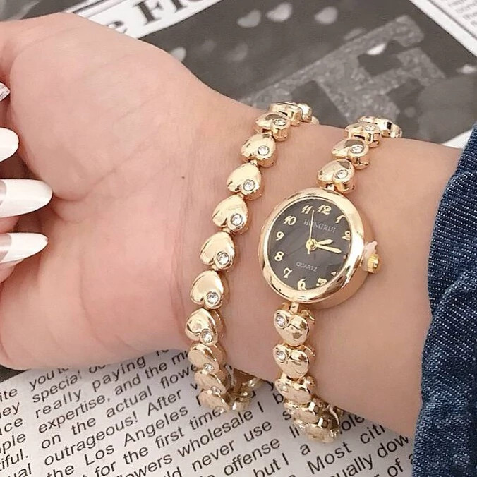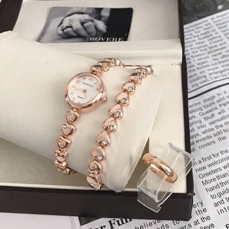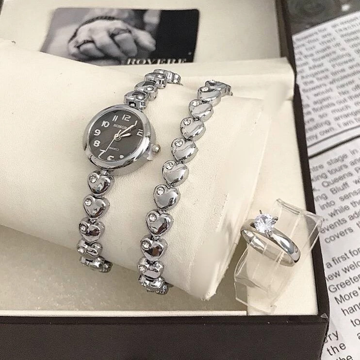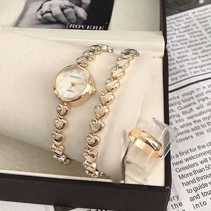 ساعت دخترانه و زنانه طرح قلب با دستبند و حلقه مارک HUNGRUI