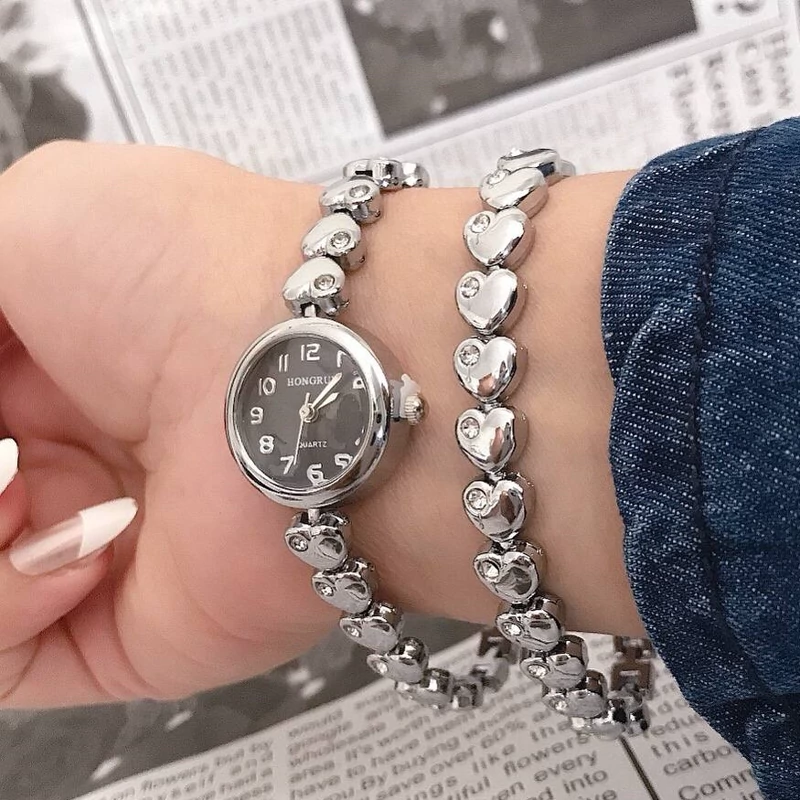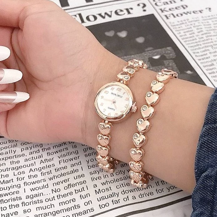 ساعت دخترانه و زنانه طرح قلب با دستبند و حلقه مارک HUNGRUI