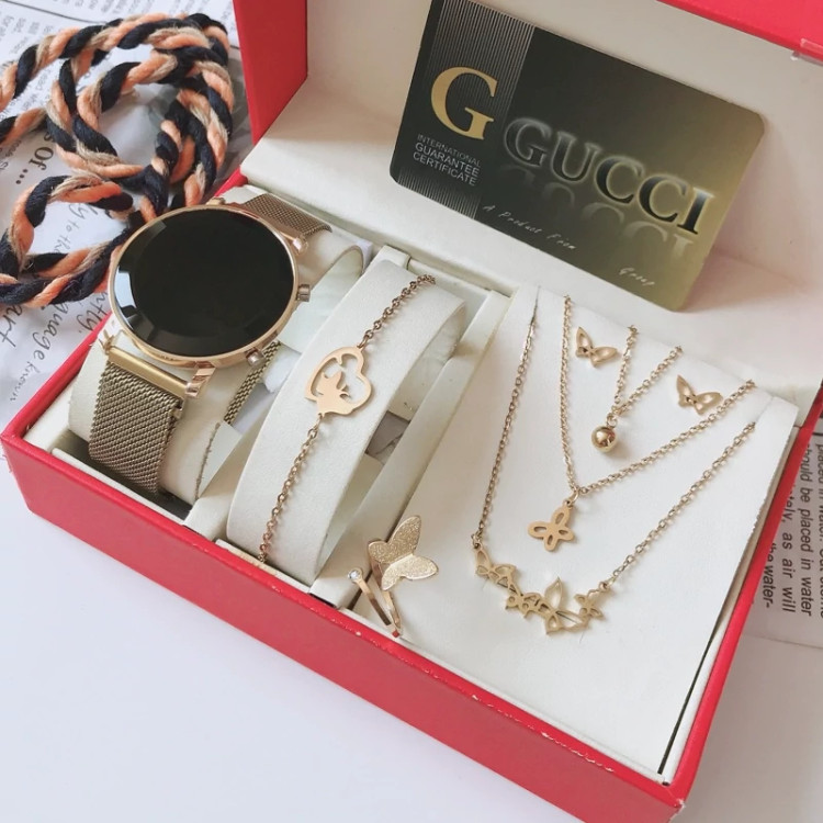 ست ساعت و نیم ست سه لاینه و دستبند و انگشتر زنانه طرح پروانه کد 300667