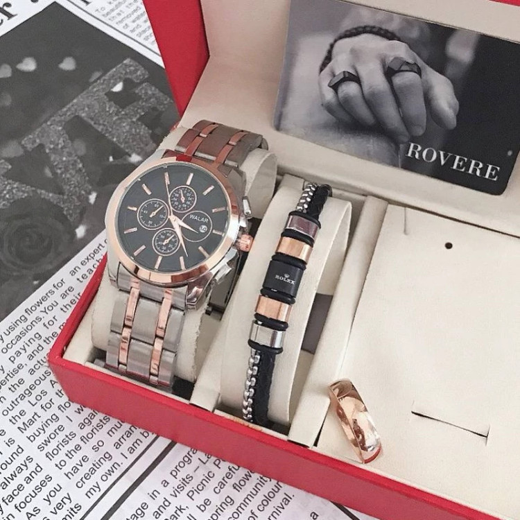 ست ساعت و دستبند و حلقه مردانه و پسرانه ساعت مارک WALAR طرح تیسوت