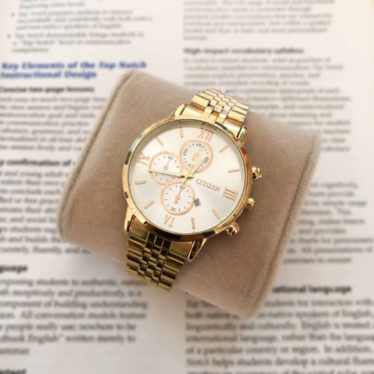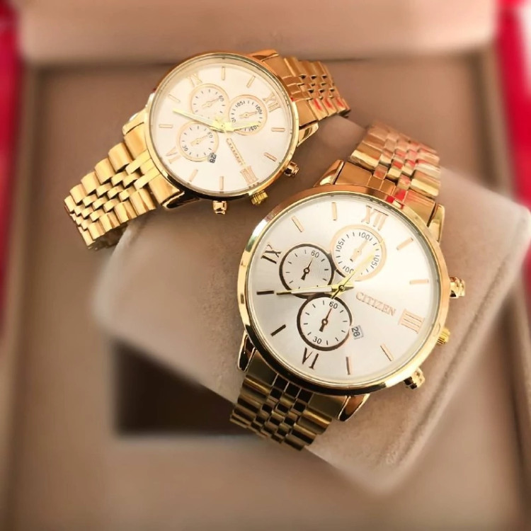 ست ساعت زنانه و مردانه مارک سیتیزن بندطلایی صفحه سفید. طرح سه موتوره