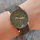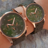 ست ساعت والار سبز بند پیو. ضدحساسیت. رنگ سبز قاب رزگلد