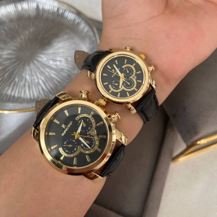 زنانه یا مردانه بصورت تک بند چرم مشکی قاب طلایی