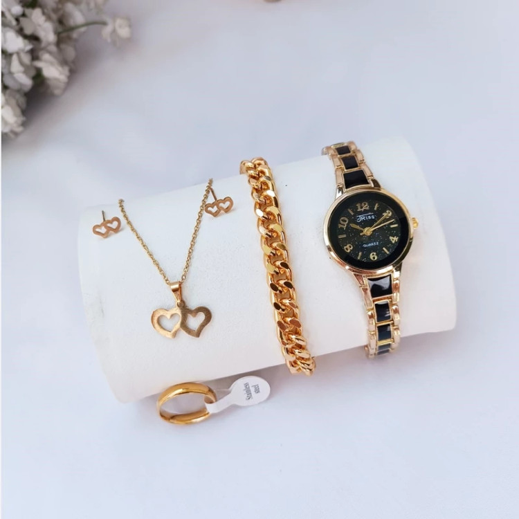 ساعت زنانه دستبند نیم ست ست کامل طلایی