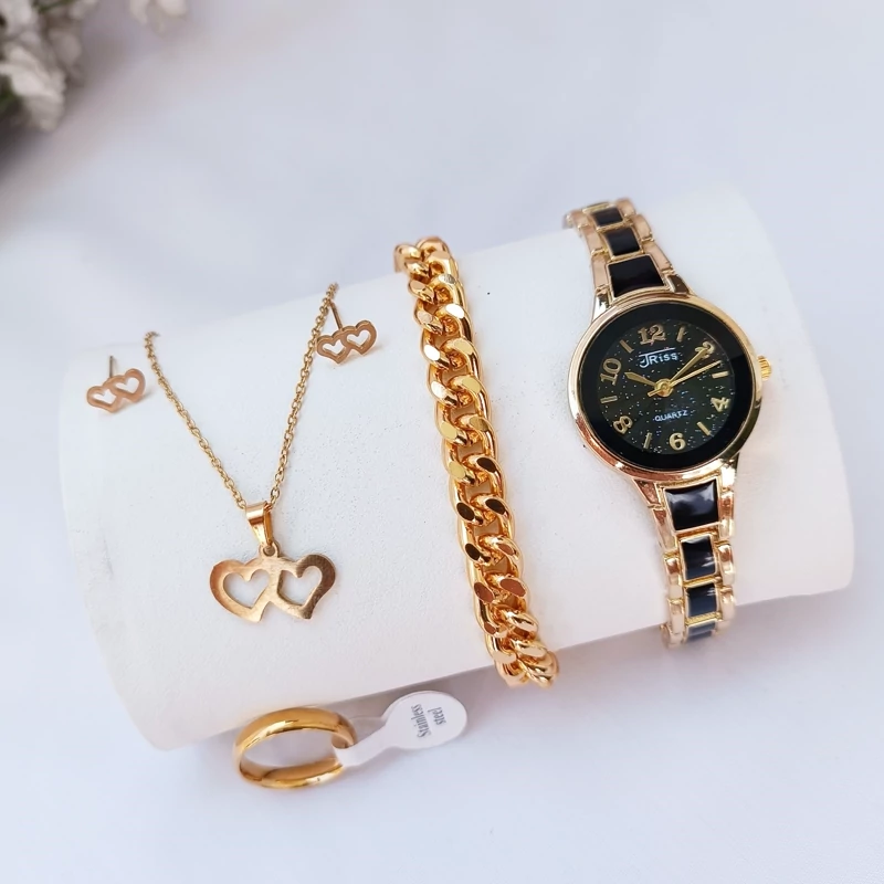 ساعت زنانه دستبند نیم ست ست کامل طلایی
