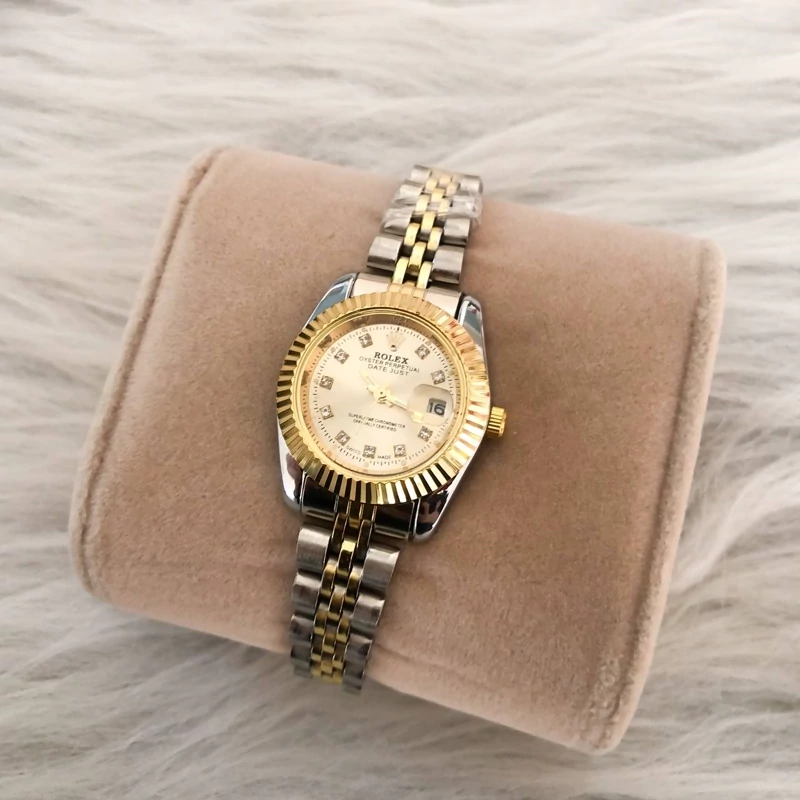 ساعت رولکس زنانه دورنگ صفحه طلایی
