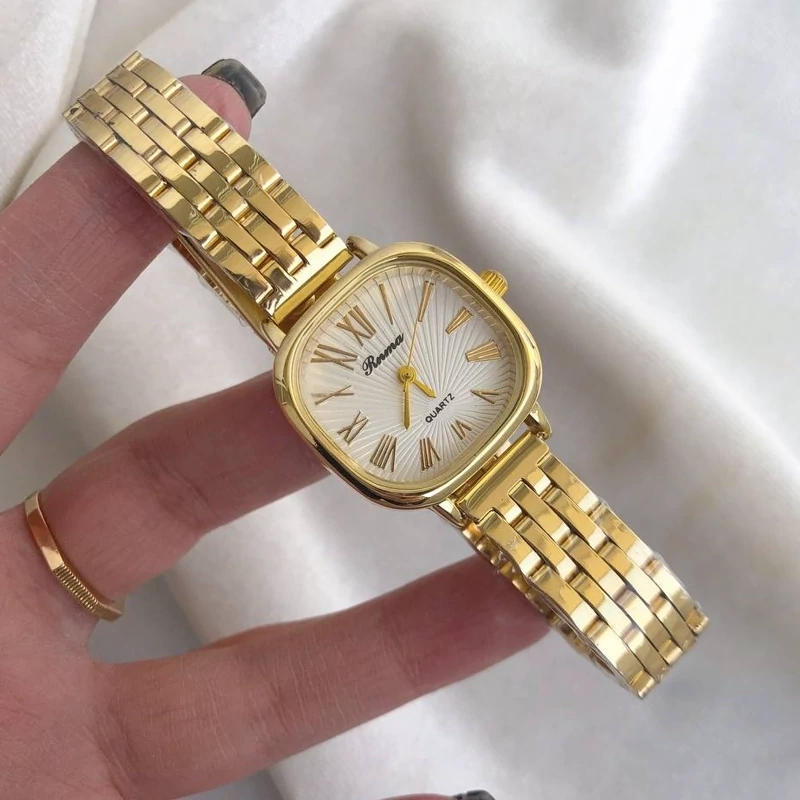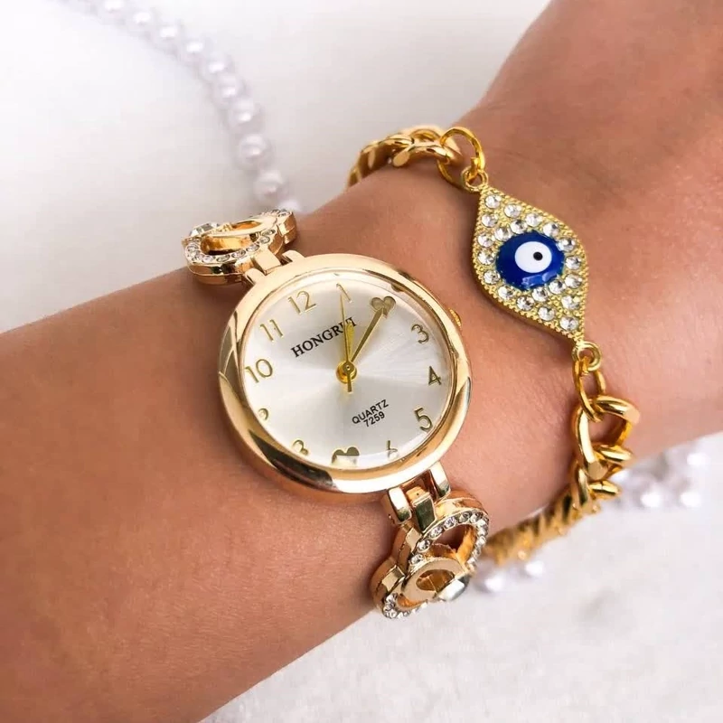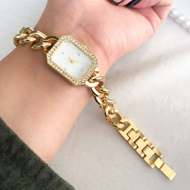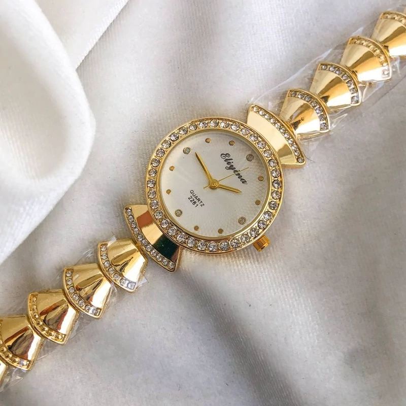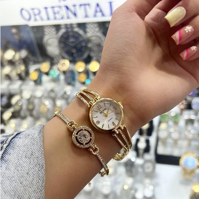 ست ساعت و دستبند زنانه طلایی مجلسی با گارانتی موتور