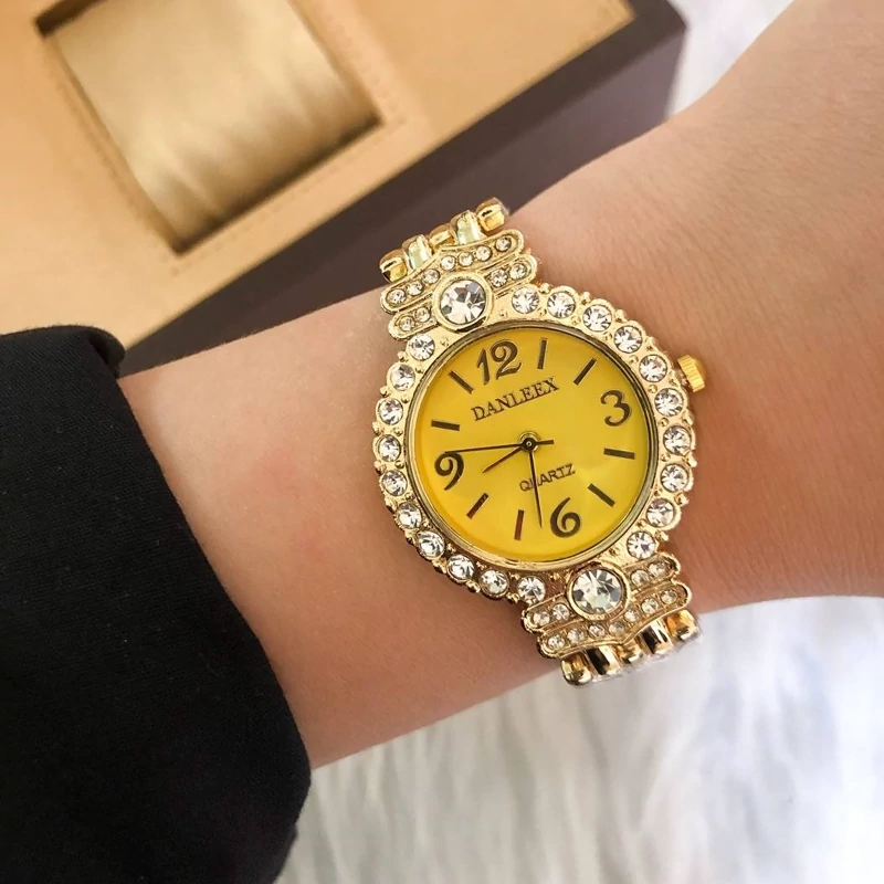 ساعت زنانه بندفلزی طلایی مارک DANLEEX