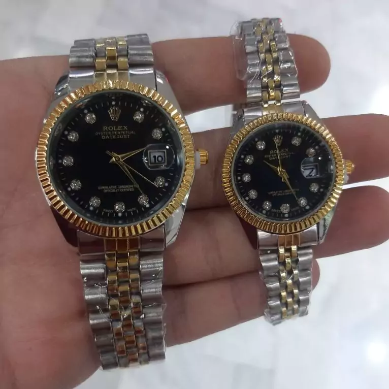 ست ساعت رولکس بند دو رنگ صفحه آبی
