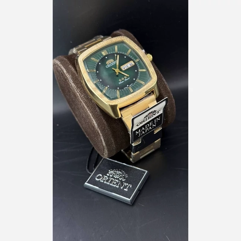 ساعت مردانه اورینت موتور ژاپن بند طلایی صفحه سبز