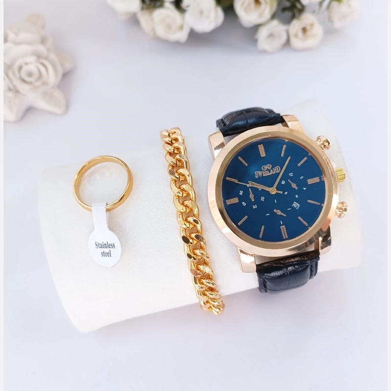 ساعت مچی مردانه دستبند انگشتر ست کامل ساعت